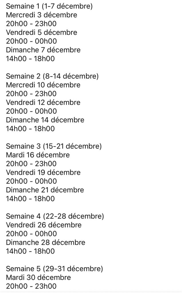 Programme du mois de décembre